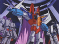 太古の地球で繰り広げられるビーストウォーズ。そこに漂着したのは、伝説のデストロン・スタースクリームのスパークだった。スタースクリームは、ワスピネーターの身体に取り憑き、プレダコン達の前に姿を現した(ワスピネーターの頭部のプレダコン・マークがデストロンのものに変わっている)。死んだはずだと問われた彼は、ガルバトロンを守ろうとしてユニクロンに破壊されたが奇跡的にスパークが助かり、宇宙を漂ううちに時空を超越、この惑星に辿り着いたと語った。スタースクリームはメガトロンへの忠誠を示すため、マキシマル基地を襲撃、そして見事基地を乗っ取ることに成功する。メガトロンはスタースクリームの働きを評価し、彼にマキシマル基地を任せる。だが、スタースクリームの目的はメガトロンの配下になることなどではなかった。ユニクロンにやられたという嘘を見破ったブラックアラクニアを仲間に引き込み、降伏してきたマキシマルにプレダコン基地への攻撃を命令する。彼の目的は両軍を支配下に置くことだったのだ。オプティマスとダイノボットを人質に取られたライノックス達は、スタースクリームの命令に従った。しかし、過去の所業からスタースクリームの裏切りを予想していたオプティマス達は、彼から基地を取り戻すことに成功。逃亡したスタースクリームをオプティマスは追跡し、両者はプレダコン基地近くで戦闘を開始する。ミサイルを連射しオプティマスを攻撃するスタースクリームだったが、敵の強烈なパンチを食らい、追い詰められてしまう。最後はブラックアラクニアの裏切りに遭い、エネルゴンの爆発の中に消えたのだった。だが、スタースクリームのスパークは破壊不能のミュータント・スパーク、故に彼は死ぬことがない。彼のスパークはTF達への恨みに燃えながら、宇宙の深淵へと消えていった。彼が再び歴史の表舞台に現れることはあるのだろうか…? |