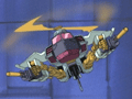 両腕の前腕部には「ストームミサイル」と呼ばれる武器を装備している。これは、先端の円筒状のパーツからミサイル状のエネルギー弾を発射する物で、マシンガンのように連射も可能。また、円筒部そのものを実体弾として(いわゆるミサイルのように)撃ち出すこともできた。ビークルモード時の主力武装には、下部にビームマシンガンを装備する。機首の下にマイクロンのクラッシュを合体させることも可能だった(画像右)。なお、ロボットモード時には背中のローターは回転させなくとも飛行できるが、姿勢制御などに利用することもあったようだ。