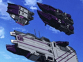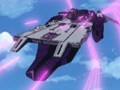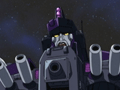 ショックウェーブはメガトロンとの合体(リンクアップ)機能を有している。左右の腕に装着するアーマー(右腕はキャノンビーム砲などを備えた複合兵器ユニット、左腕はシールド)と、大型のスラスターユニットに分離・変形することで(画像右)、メガトロンと合体することが可能。メガトロンに飛行能力を付加するだけでなく、攻撃力と防御力をも増強させる。なお、元々ショックウェーブは他の大型TFとの合体能力を持ったTFのようで、恐らくメガトロン以外のTFとも合体は可能と思われる(3つのパーツに分離・変形し、両腕と背中に装着されるだけなので)。実際メガトロンは、ショックウェーブとの合体が可能とは知らなかったようである。 |