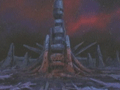 「月面基地」とも呼ばれる、地球の月にあるデストロン軍の前線基地。墜落したマイクロンシップの残骸を利用しており、その機械類は様々な用途に使われたようだ。基地の中心部は玉座の間(画像右)であり、メガトロンはそこで部下達に指示を出していた。マイクロンシップの大部分は月面にあるため、比較的大きな基地だったようだ。内部にはデストロンシップを建造するための広大なスペースも有している。400万年前の激突による損傷はひどいものの、シップ内の「ワープゲート」や「リペアシャワー」といった装置などは今でも正常に作動している。