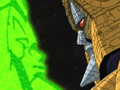 マイクロン達が合体して形成した光のユニクロン。緑色に輝く光の巨人であり、ユニクロンの動きを封じ込めるほどの強大な力を持つ。ユニクロンの姿なのは、マイクロンがユニクロンから生み出された種族だからである。ユニクロンがセイバートロン星に接近・攻撃しようとした際、マイクロン達が集結・合体し、光のユニクロンとなり、その動きを封じ込めた。この光の巨人の力によって、セイバートロン星の破壊は免れたようだが、ユニクロンがマイクロンの自我を一時的に消し去った際には、バラバラに分散し、それに衝突した連合軍の戦闘機などに大きな被害が出てしまった。 |