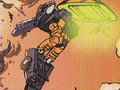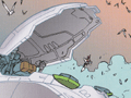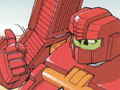 傭兵・デバスターが地球への航行に使用した高速宇宙船。大型TF一人乗り用で、乗降の際には前面のハッチが大きく展開する構造となっていた。「遮蔽装備」によって、その存在が人間達に察知されることはなかった。インドのデカン高原で発見したレッドライン達は、これをデバスターから譲り受け、マイクロン脱出計画の拠点とした。大型TFにとっては比較的小型の宇宙船だが、マイクロンや人間にとっては“基地”としても十分な大きさだったようだ。トゥワールの再生作業なども、この宇宙船内で行われ、また内部の機械類は、レッドライン達が“進化”するための施術に利用された。アクアレイダーチームの攻撃も受けたが、その後サイバトロンのラヴィナスがセイバートロン星への帰還に利用している。 |