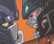細かい部分ではありますが、PART1冒頭のコンボイとメガトロンの色が、アニメと微妙に異なっています。アニメのコンボイの額のインテークは(TFシリーズでも珍しい)特徴的な黄色でしたが、本作のはなぜかシルバーで、メガトロンの頭部もアニメではライトグレーだったものが、本作では青緑系の色(トイ準拠っぽい…)になっています。
