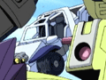 ダートのビークルモードの色もアニメと若干違っています。アニメではフロントカウルが青で、ヘッドライトの部分はグレーでした(アニメでは、彼のビークルモードは第18話で確認できるくらいですが…)。なお、本作のダートのロボットモードのデザイン(トイ準拠)とアニメ(の設定画)とでは、胸部などに違いが見られますが、アニメで彼のロボットモードは数えるほどしか登場していなかったりします(正面向いたシーンはないかも・汗)。