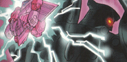 サンバーン「<あのお方──我らの創造主が、お目覚めになる。 トランスフォーマーの争いが、“彼”の復活に十分な力をもたらしたのだ。 あとは、覚醒に必要な三つの鍵を納めるのみ。既に風向きは 変わった。マイクロンの役目は終わりを告げたのさ! そして我々は、ふたたび大いなる暗闇に迎えられ、彼と一つになる>」 「<ラヴィナスは、マイクロンの力に溺れ自分を失った、哀れなバルク──。 だがそんな奴にも、ひとつ大きな使い道がある。バルクと マイクロン間の単方向マインドチャンネルを使えば、これまで不可触だった お前たちのリンケージと、アクセスが可能になるとわかったのだ>」