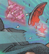 ファルシア「これ、おかしな副作用とか出ないでしょうね?」 ステラ「あんたたちの声が、耳から聞こえるわ! それにその、キラキラのオーラ。前々からすごいと思ってたけど── 自分を改良するなんて、あんたたち本当にすごい! あたしもプラチナブロンドに変身できたらいいのに」 ファルシア「私はその色好きよ…。でも、褒め合いっこするのは、 生き延びてからだわ!私はレッドを追いかける!」 (ファルシアはレッドラインを助けるため、島を飛び去った)