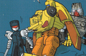ミッドシップ「“<手筈が整い次第、我々も急行する──。 この作戦をもって、すべてを終わらせるのだ!>”」 感想&解説 冒頭のサーボのセリフの中の“彼ら”とは、ラッド、カルロス、アレクサのことです。多くのマイクロン達にとって、アニメ第46話での、あの“時空を超えた出会い”は、「夢物語」だと思われていたんですね。無理もない話ではありますが。どうやら地球の子供達との出会いによってマイクロン種族が自我に目覚めたというのは、彼らにとって周知の事実ではなく、あの場にいた、ごく少数のマイクロンのみが知っていただけのようです。 なお、サーボと一緒に来た女性型マイクロンの2人は、銃を持ち護衛のような感じです。過去にミッドシップ達の襲撃を受けたため、用心する必要があったんでしょうね。 下の画像を見れば分かりますが、今回のウィーリーのデザインは、完全にトイ準拠になっています…(右の2つの画像がアニメのイメージ)。色が異なるので、特に顔が…(汗)。本作では他にも、キャラクターのデザインや色がアニメと微妙に違う点はありますが、最も目立つのはウィーリーです。重要キャラだけに、ちょっと残念すぎ…(涙)