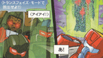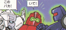 ファルシア「このバカ!」(レッドの頭を小突く) レッドライン「いて!」 フラットアウト「また先走りやがって。お前ひとりに面倒を押しつけるかよ!」 キングボルト「いまや結晶体の処置は、マイクロンの責任となった」 コンバスタ「わかったら次元のアクセスをこっちにも開きな、おセンチ坊や!」 かくして、破滅の種子による危機は回避されたのだった…。 その夜。バンブルとプライムが、レッドライン達の前に現れた。