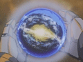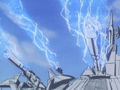 ゾディアックは、地球の日本、富士山の麓地下1万5千メートルにある地底空洞に存在していた。ゾディアックを中心に、結晶が放射状に伸び、どことなく封印されていたようにも思える(画像左上)。結晶が取り除かれたゾディアックは、岩石のようなものによって覆われた姿をしていた(画像右上)。ダイナザウラーの放ったエネルゴンZビームと結びついたことで、ゾディアックはその真価を発揮し、パワードマスター達にZモードの力を与えたのである。 |